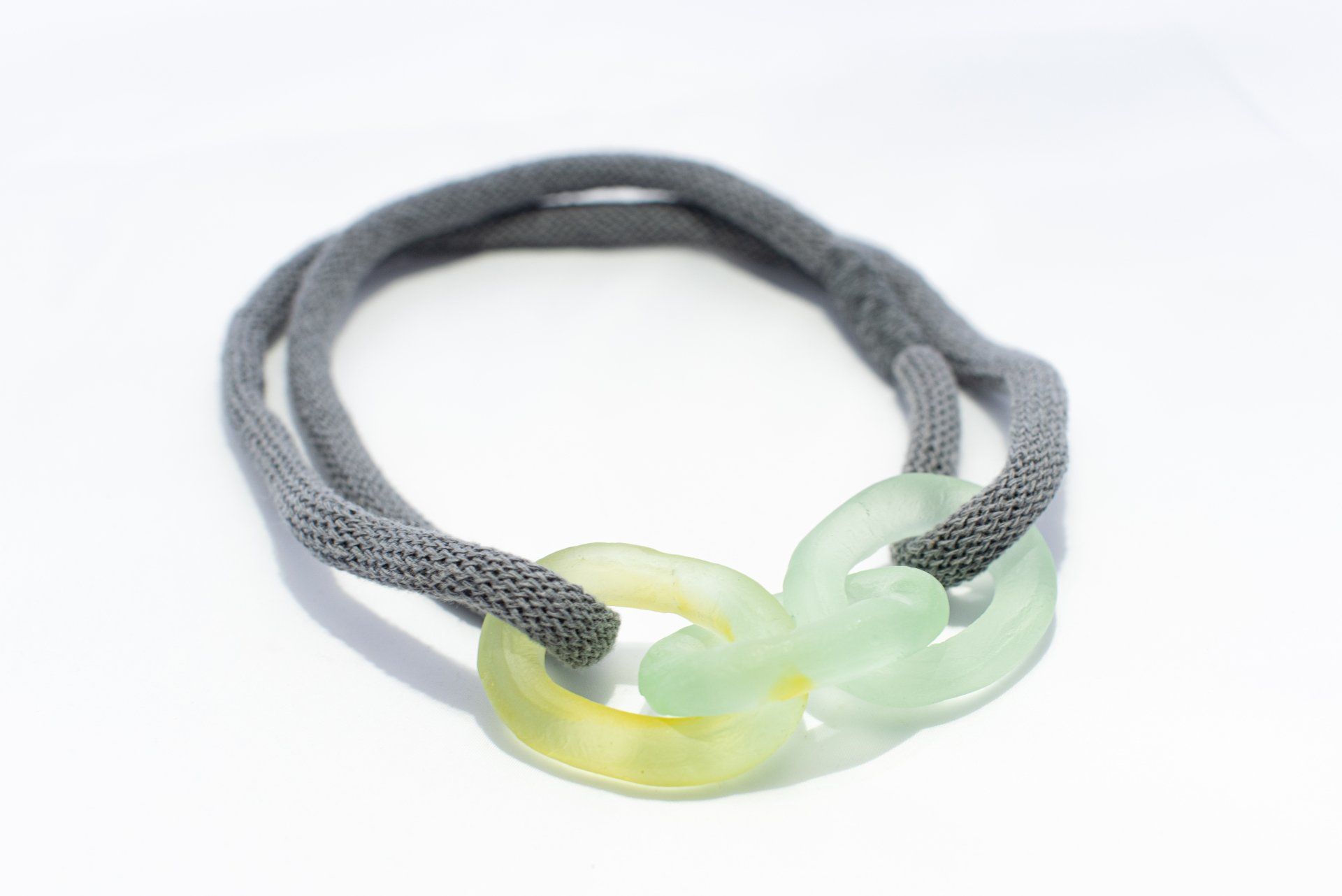 Amy is pro-glass over plastics. Having grown up on the coast of Dorset, on the sand and in the sea, she is a water baby. Inspired by weathered rope & rusty chain, connecting the earth to the oceans. Amy creates colourful cast glass chain combined with sustainable materials for jewellery & sculpture that doesn't cost the environment.